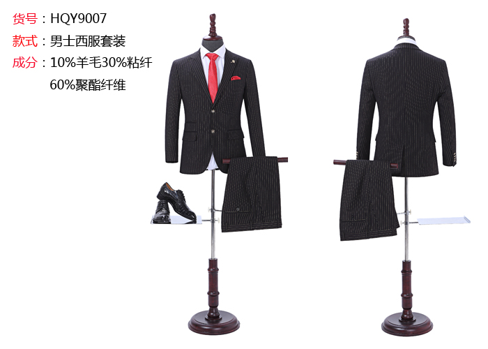 遂宁定做工作服-黑色条纹两粒扣西服实拍款式图